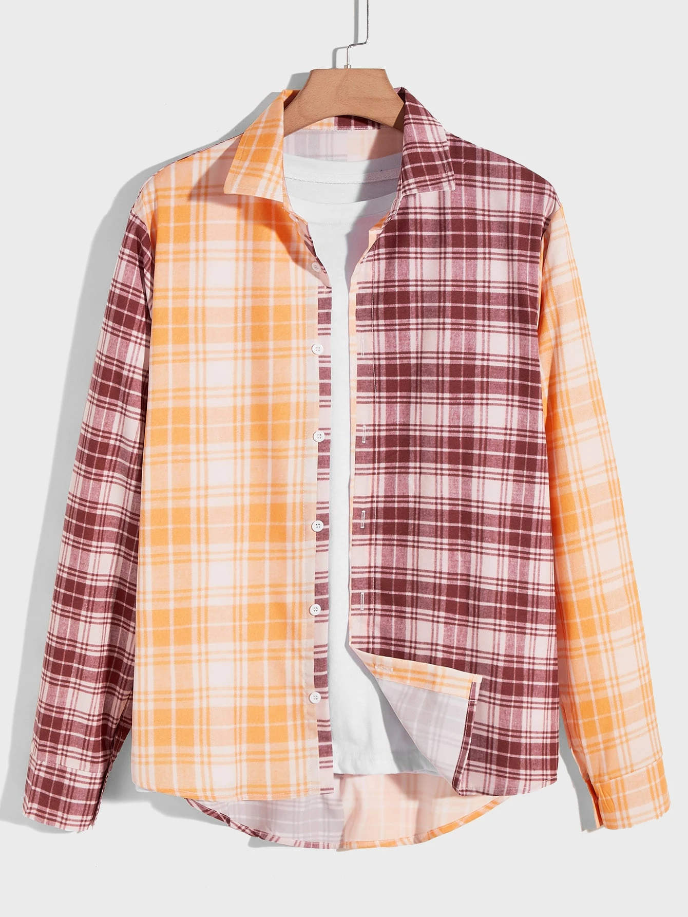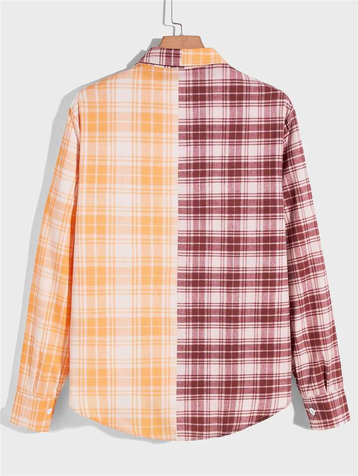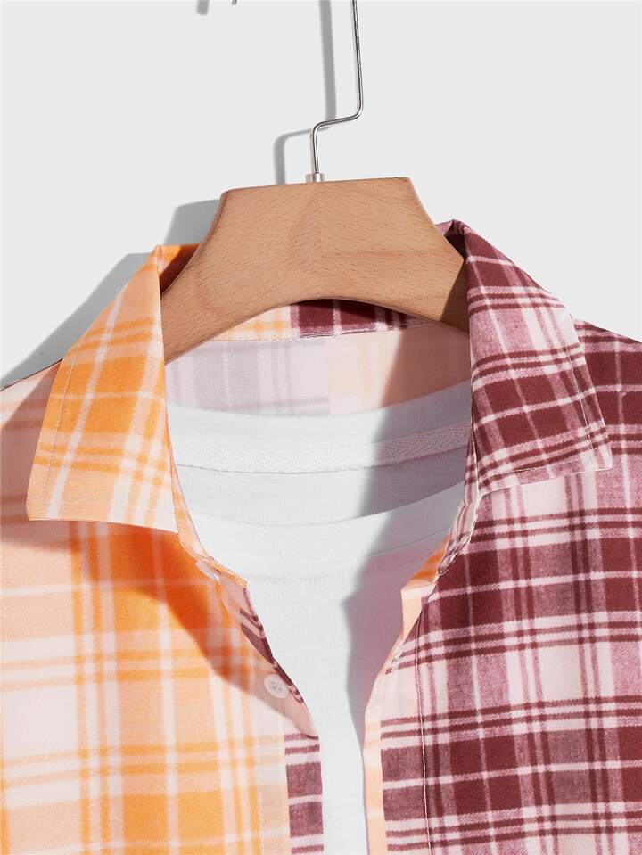 قميص بازرار امامي بالوان متجانسة مربع النقش للشباب
