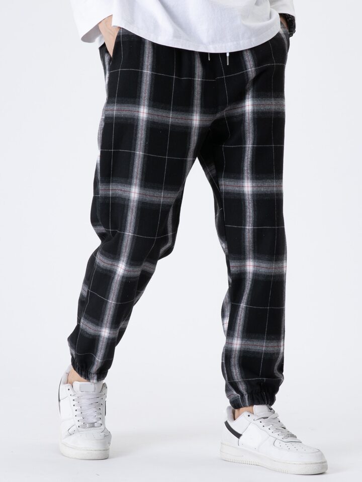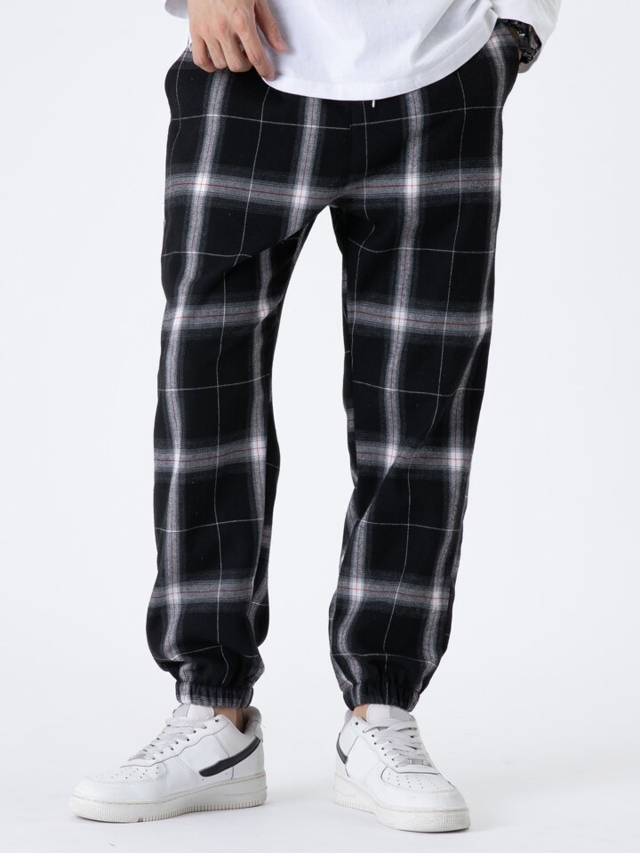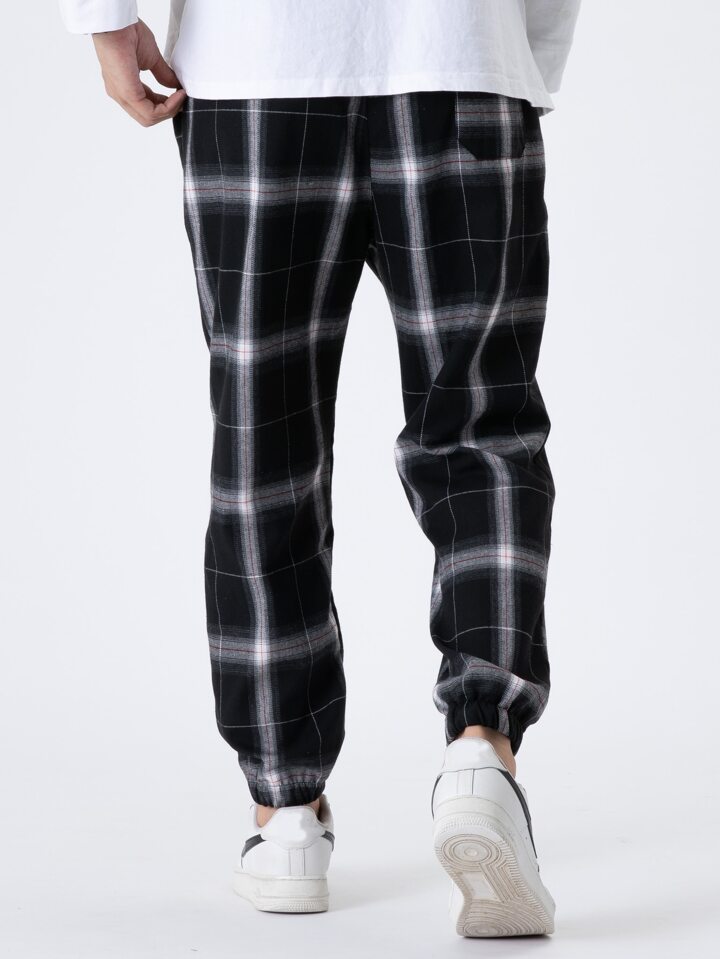 سروال رياضي رجالي فضفاض بطبعة المربعات ورباط عند الخصر