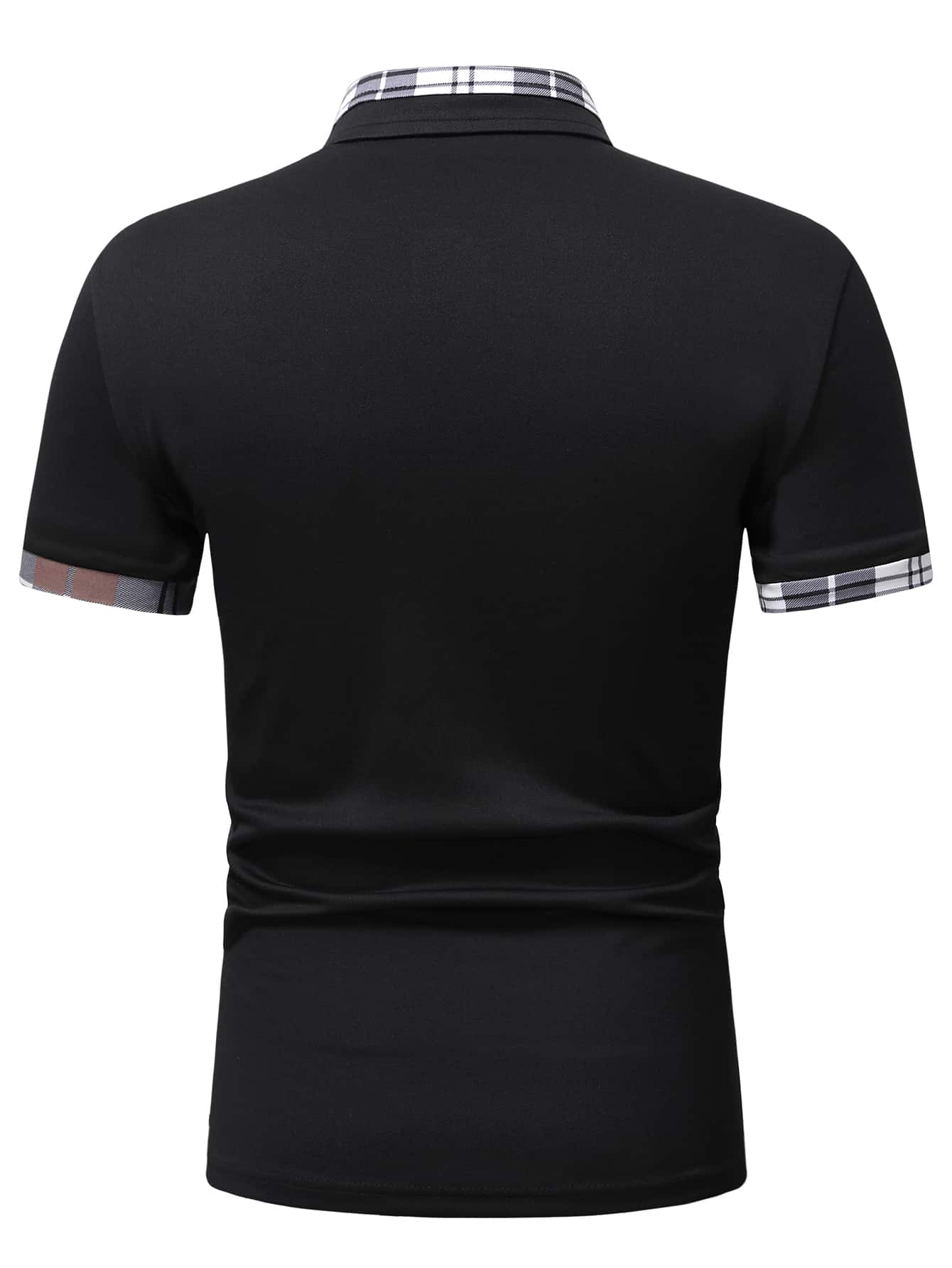 للرجال قميص بولو مربعات ملونة مرقع جيب