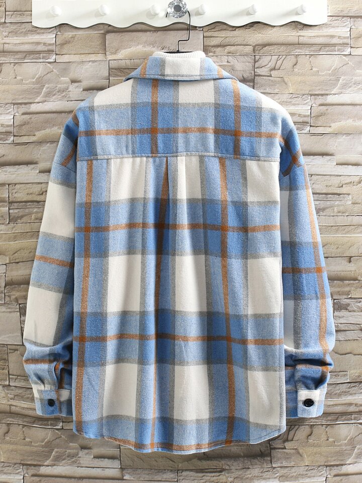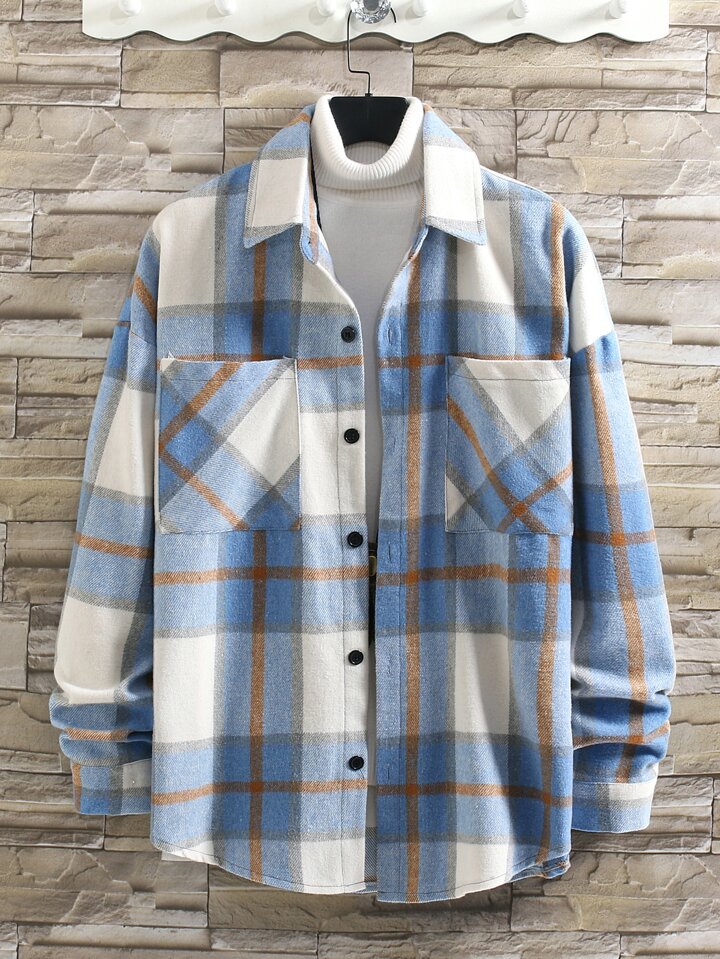 معطف بصف ازرار بجيب مرقع مربع النقش للرجال