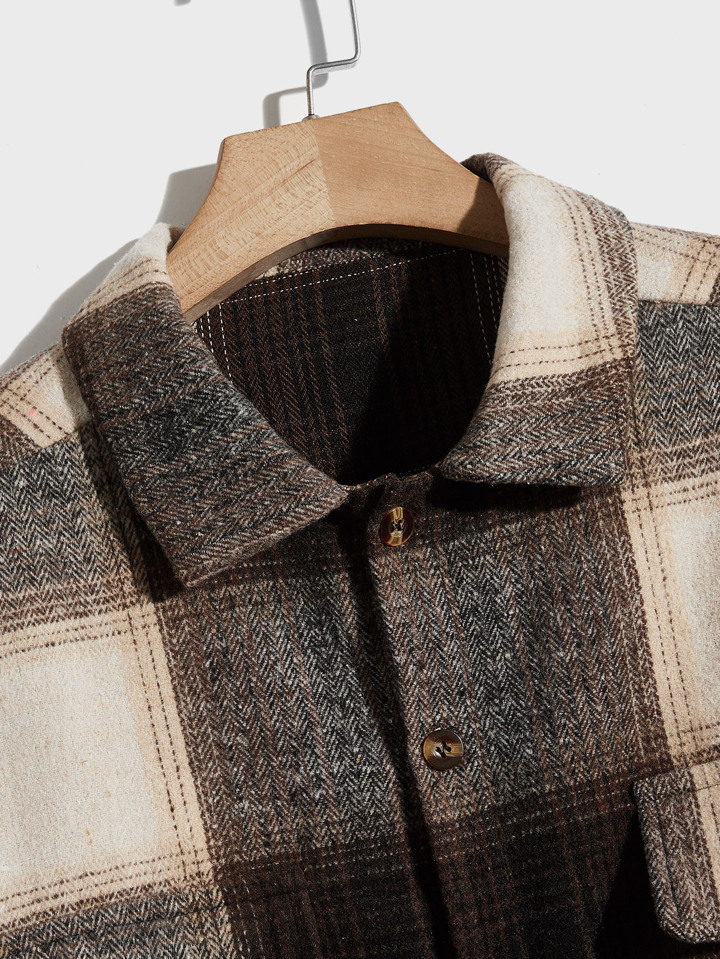 معطف طباعة مربع النقش منخفض الاكتاف للشباب