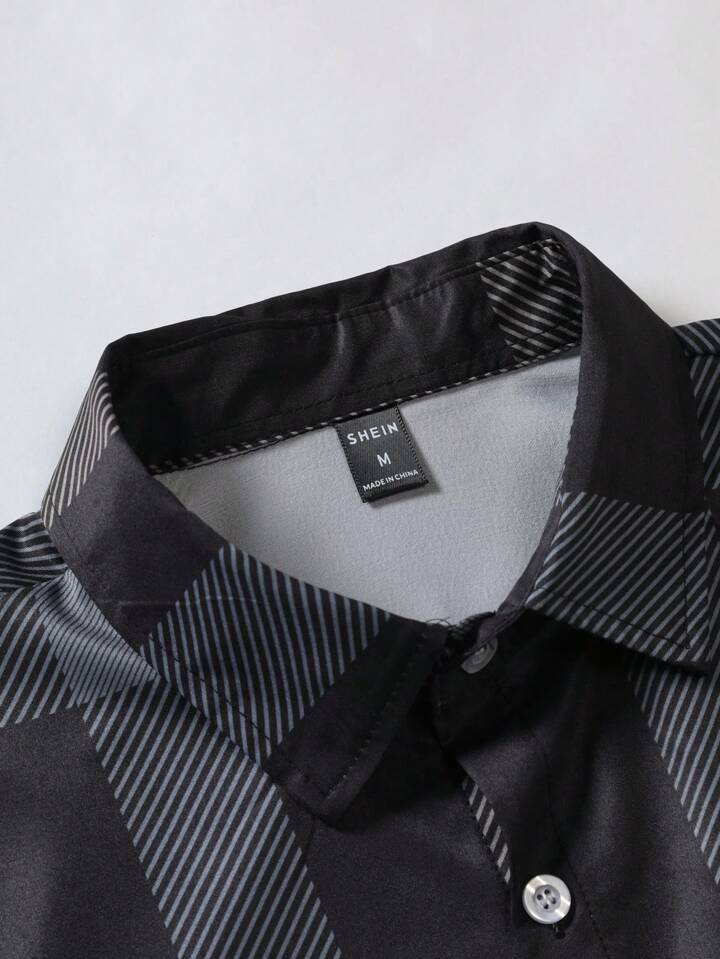 قميص طباعة مربع النقش بدون تي شيرت للرجال