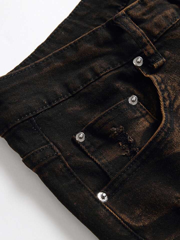 بنطلون جينز ممزق مربعات ملونة للشباب