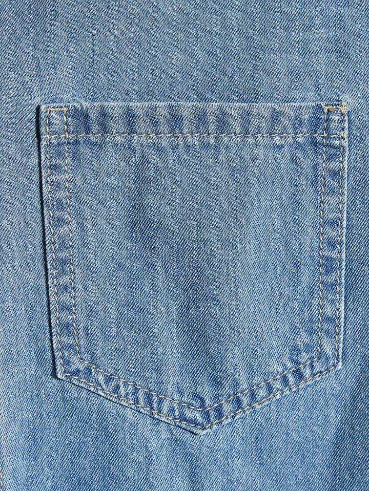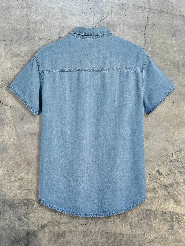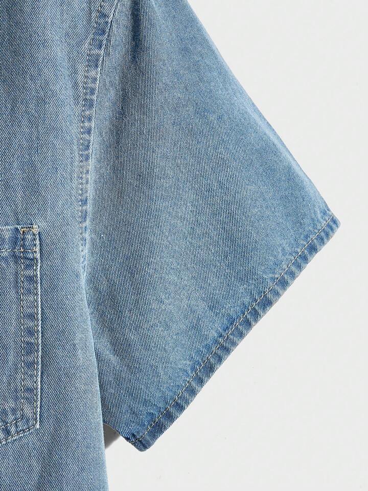 قميص من الجينز القطني بجيب مرقع للرجال بدون تي شيرت ، أساسيات الموضع الشارعي