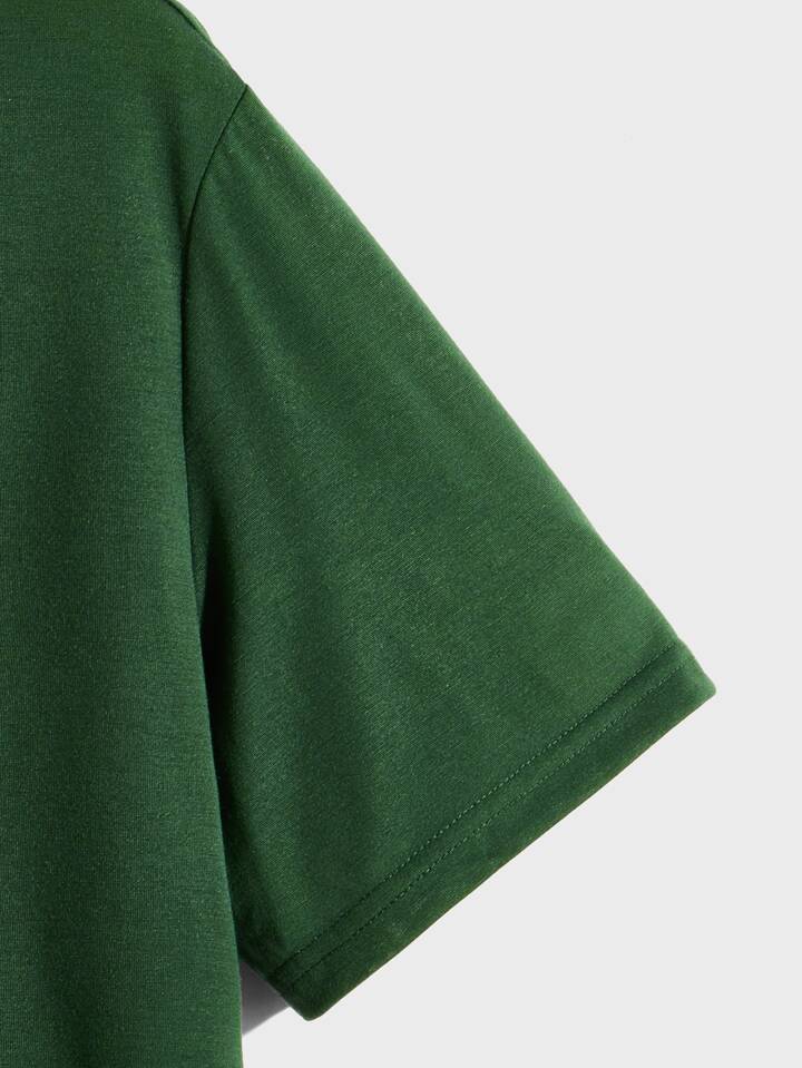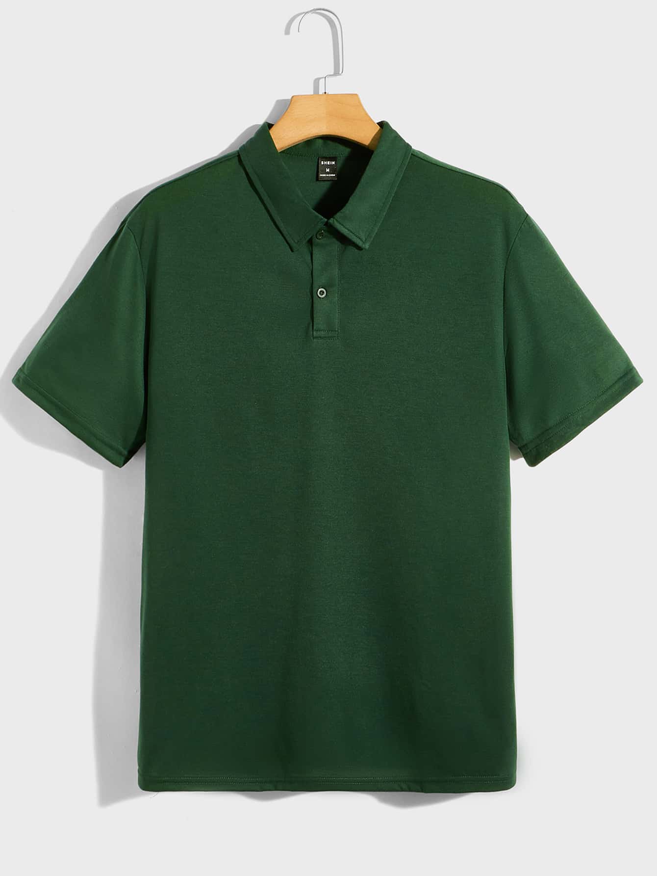 قميص بولو رجالي بلون أحادي بقصة فضفاضة بأربعة أزرار