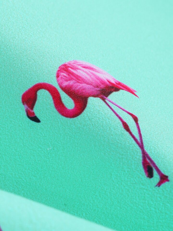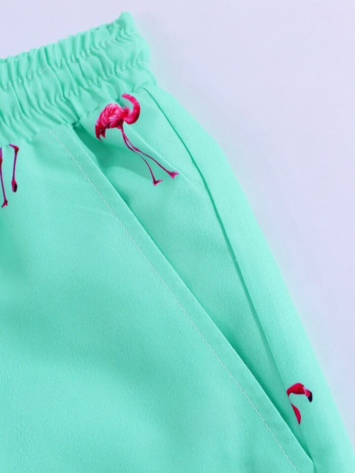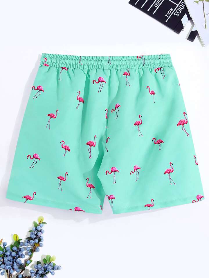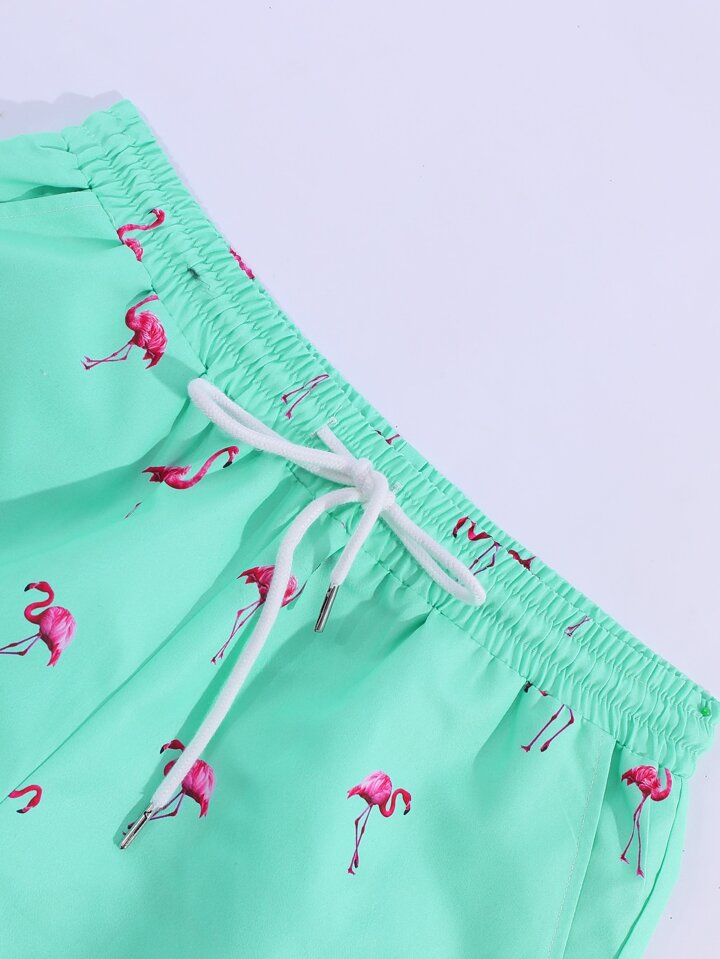 سروال سباحة للرجال بخصر مرباط مطبوع بنقشة الفلامنجو العشوائية ، هاواي