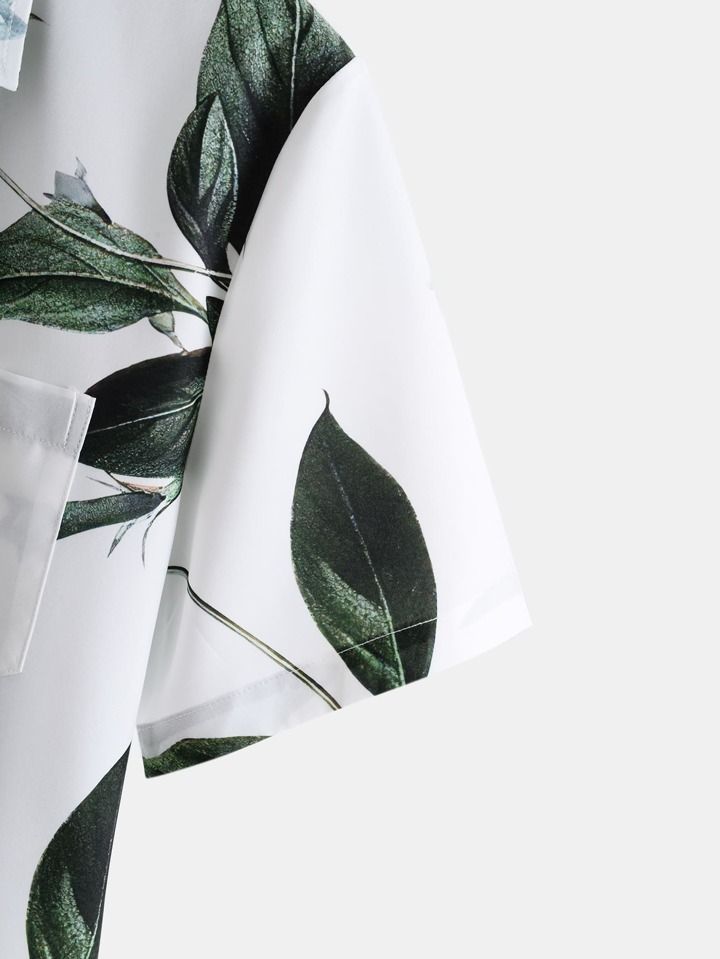للرجال قميص زهور عشوائية مع طباعة ورقة مرقع جيب