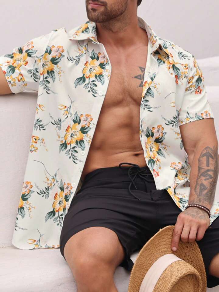قميص زهور عشوائية طباعة بدون تي شيرت للرجال