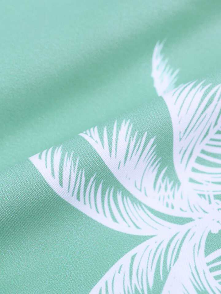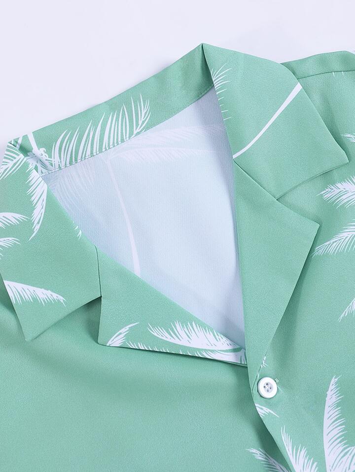 قميص مطبوع بأشجار النخيل عشوائي وشورت بخصر رباط بدون تي شيرت، عطلة
