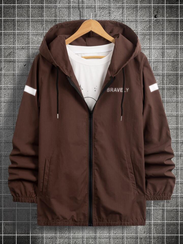 للرجال جاكيت عاكس بطباعة أحرف قبعة سباحة بدون تي شيرت