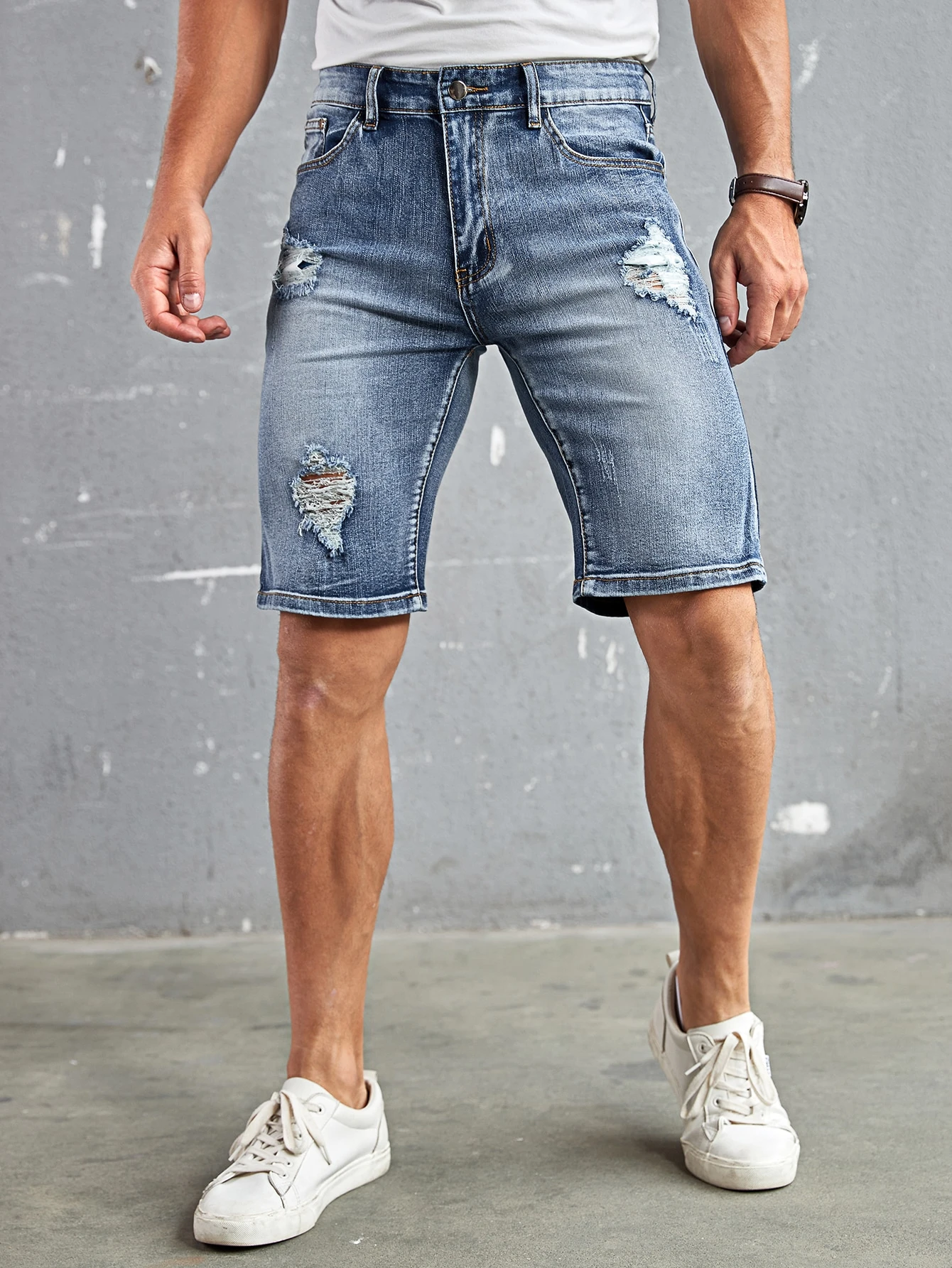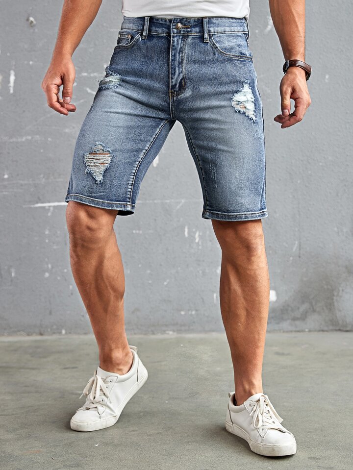 شورتات جينز مبهتة محروقة ممزقة للرجال