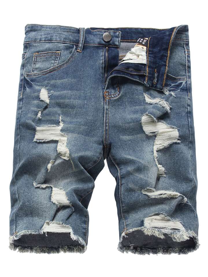 شورت دنيم قطن ممزق بحافة مهتري الحواف للرجال