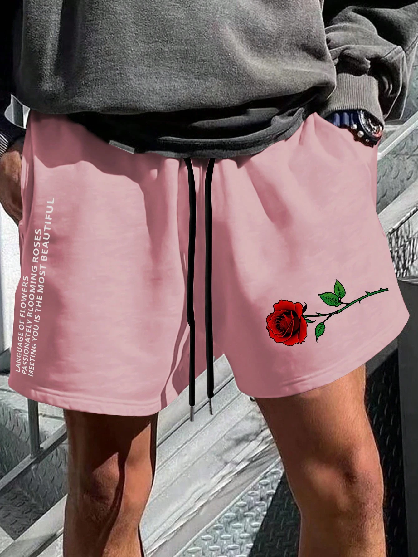 بنطلون قصير وردة & بطباعة شعار رباط خصر للرجال