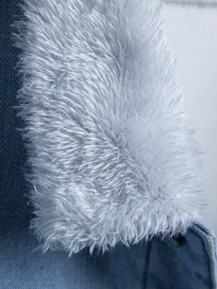 جاكيت جينز رجالي أزرق فضفاض بأزرار أمامية مبطن بالشيرلين وبدون تي شيرت