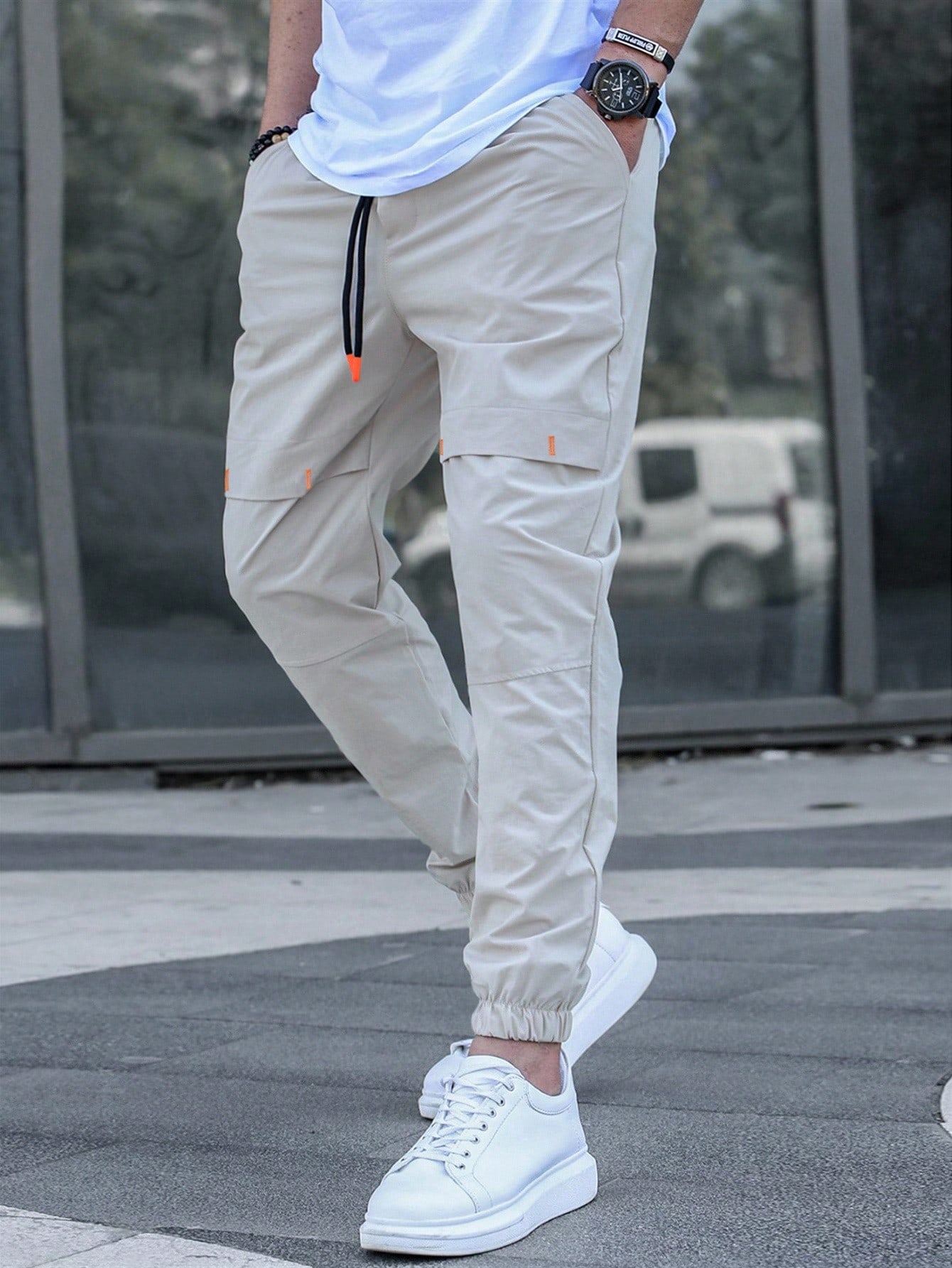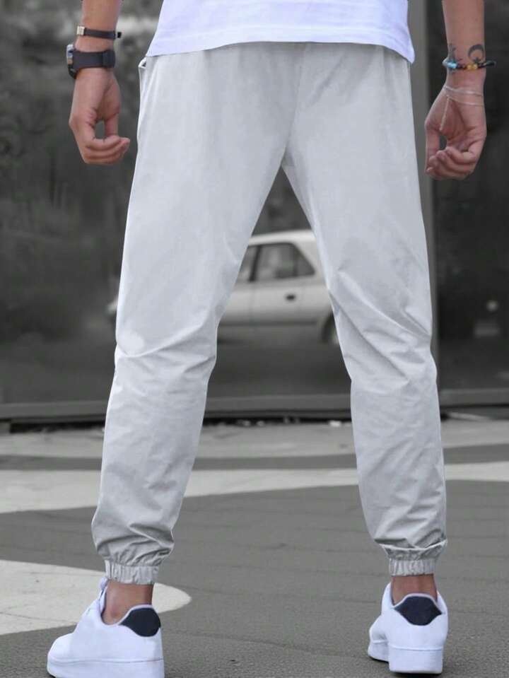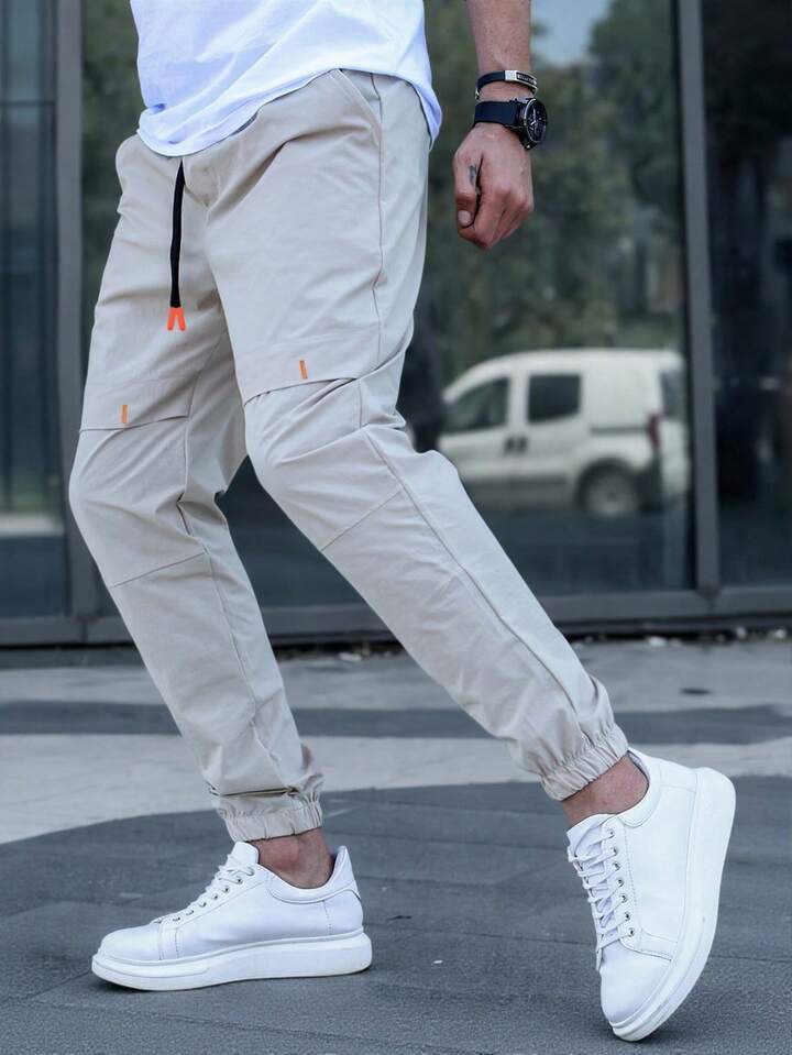 بنطلون رجالي كاجوال بجيوب مائلة وخصر بسحاب، خريف