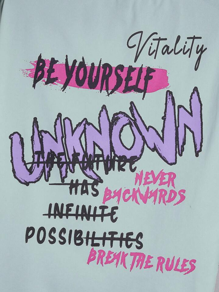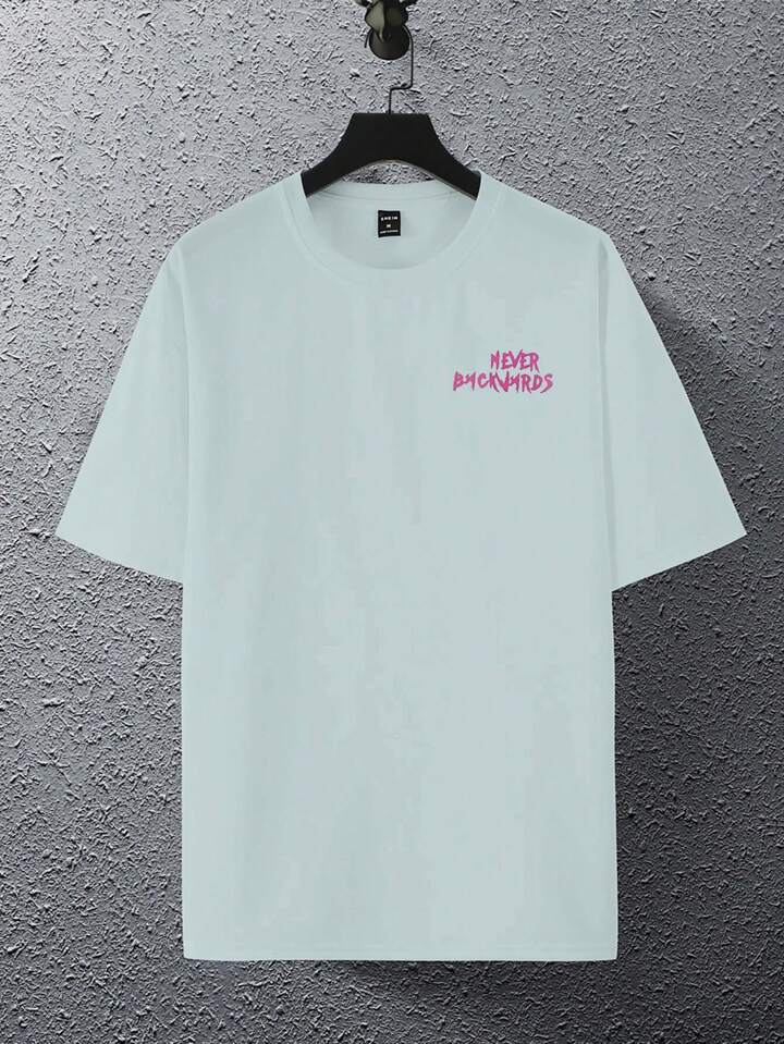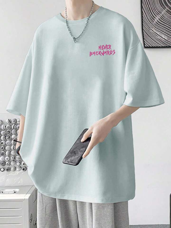 تي شيرت رجالي بالكتف المنخفض بقصة فضفاضة وتصميم جرافيكي وشعار