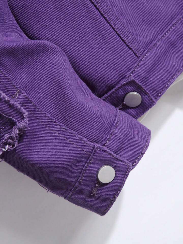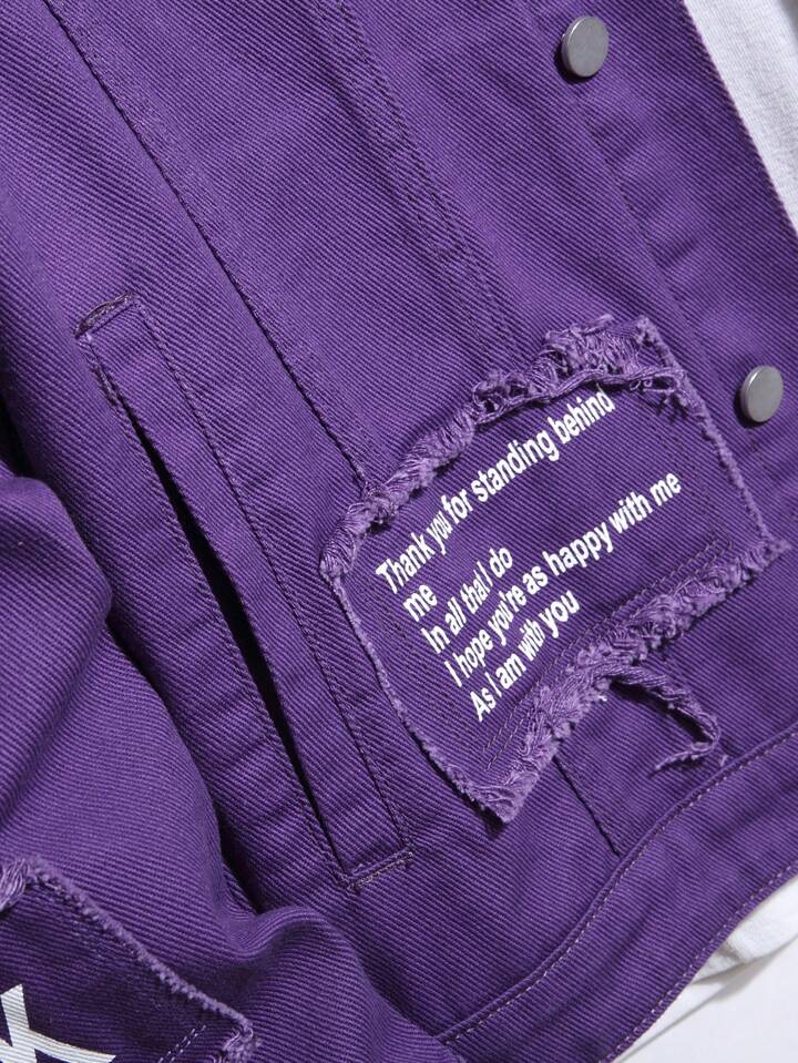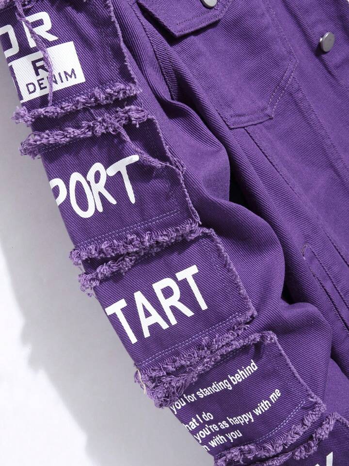 جاكيت جينز بجيب رباط مع طباعة شعار للرجال، للخريف