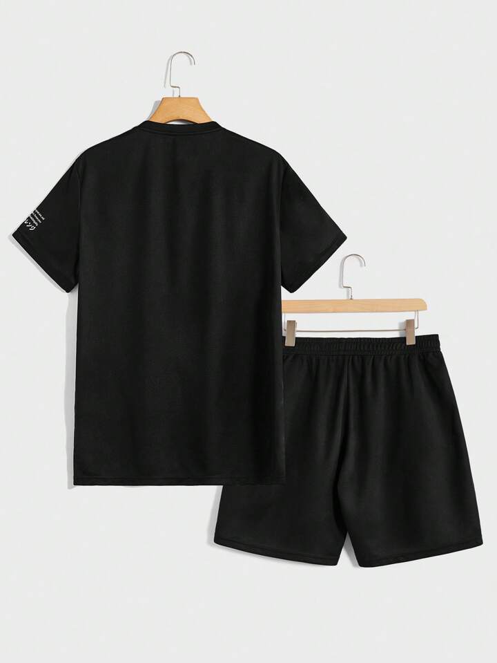 طقم تيشيرت وشورت كاجوال مطبوع بشعار للرجال، صيفي
