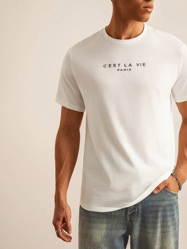 تيشيرت قطن بنقش عادي وشعار للرجال، تصميم مربع، هدية للحبيب ، صيفي