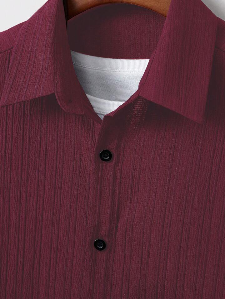 قميص أزرار بلون واحد وشورت بخصر رباط بدون تيشيرت، ملابس مريحة للرجال