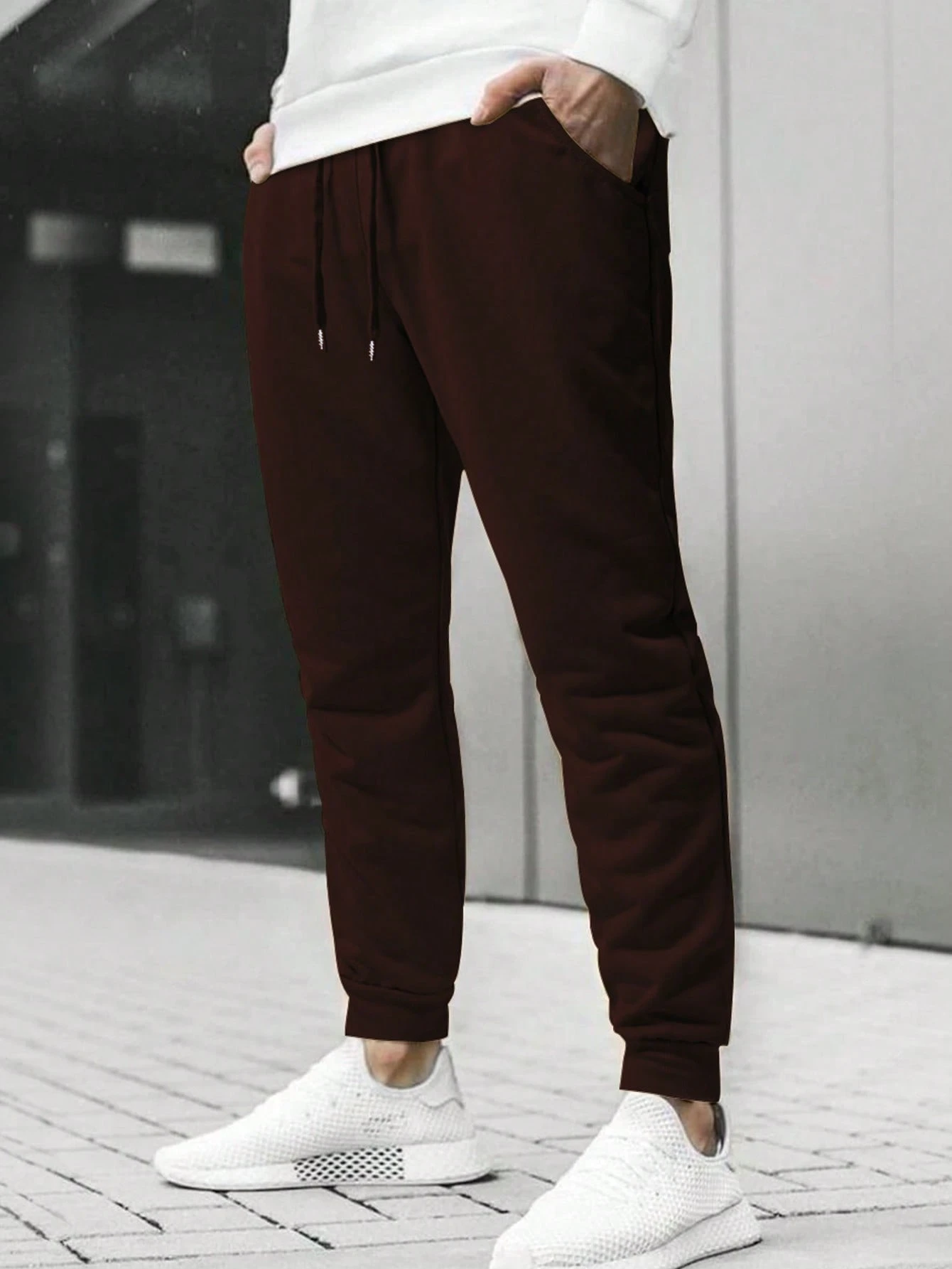 بنطلون رياضي رجالي فضفاض القصة بلون سادة وخصر برباط
