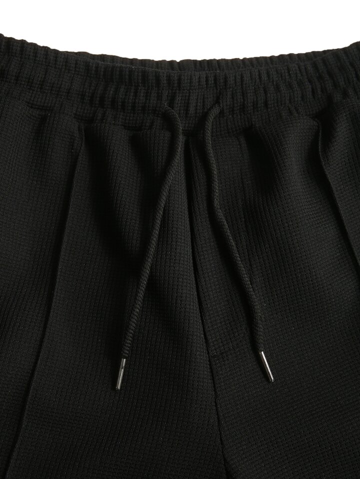 للرجال موحدة اللون تي شيرت منخفض الاكتاف و رباط خصر بنطلون قصير