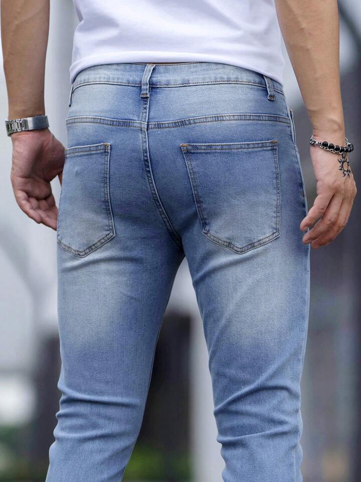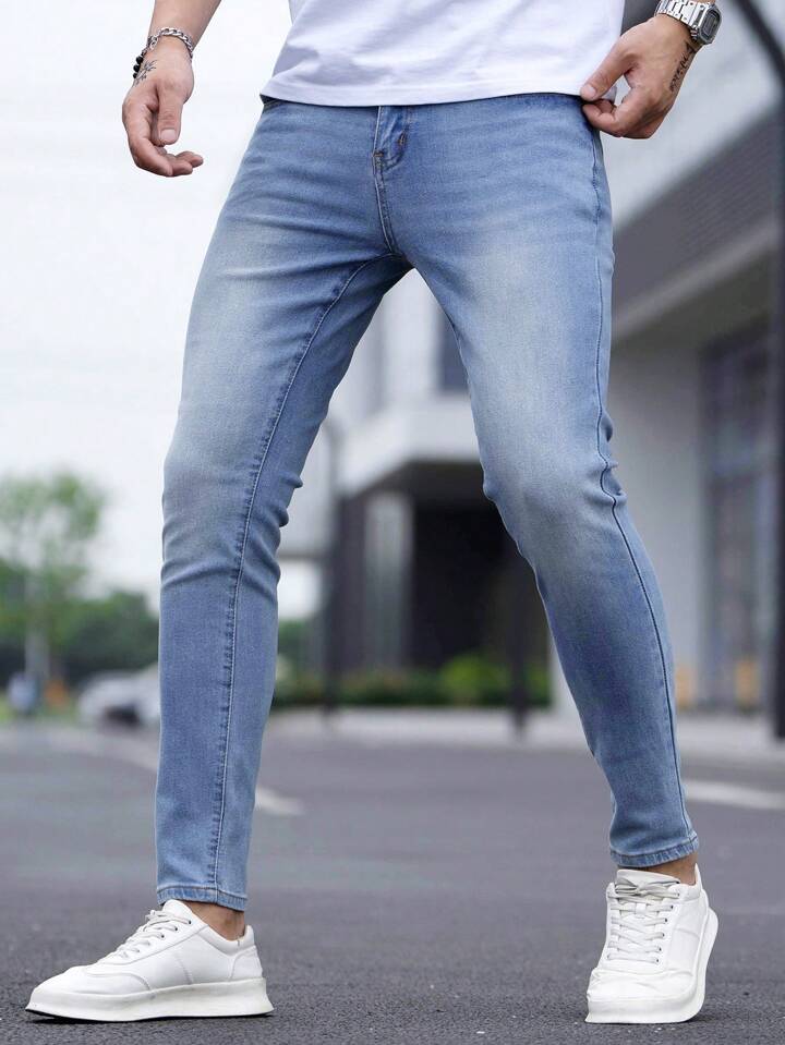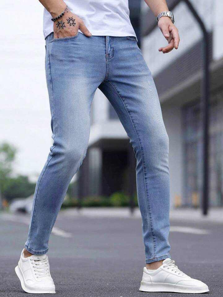 بنطلون جينز نحيل قطن موحدة اللون للرجال