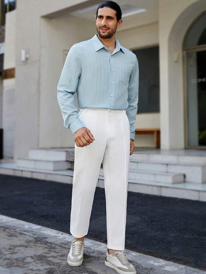 بنطلونات رجالية متماسكة بجيب مائل، بنطلونات طويلة بيضاء سادة للعمل والموضة، مناسبة للأب والزوج والصديق