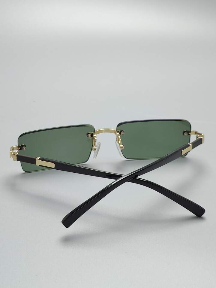 قطعة واحدة نظارة شمس مربعة إطار معدني لا إطار أخضر للرجال، إكسسوارات نمط الشوارع مناسبة للكنزة والسترة والهودي وبنطال الجلد والحمولة لارتداء في الشاطئ والعطلات الصيفية والخارجية والسفر