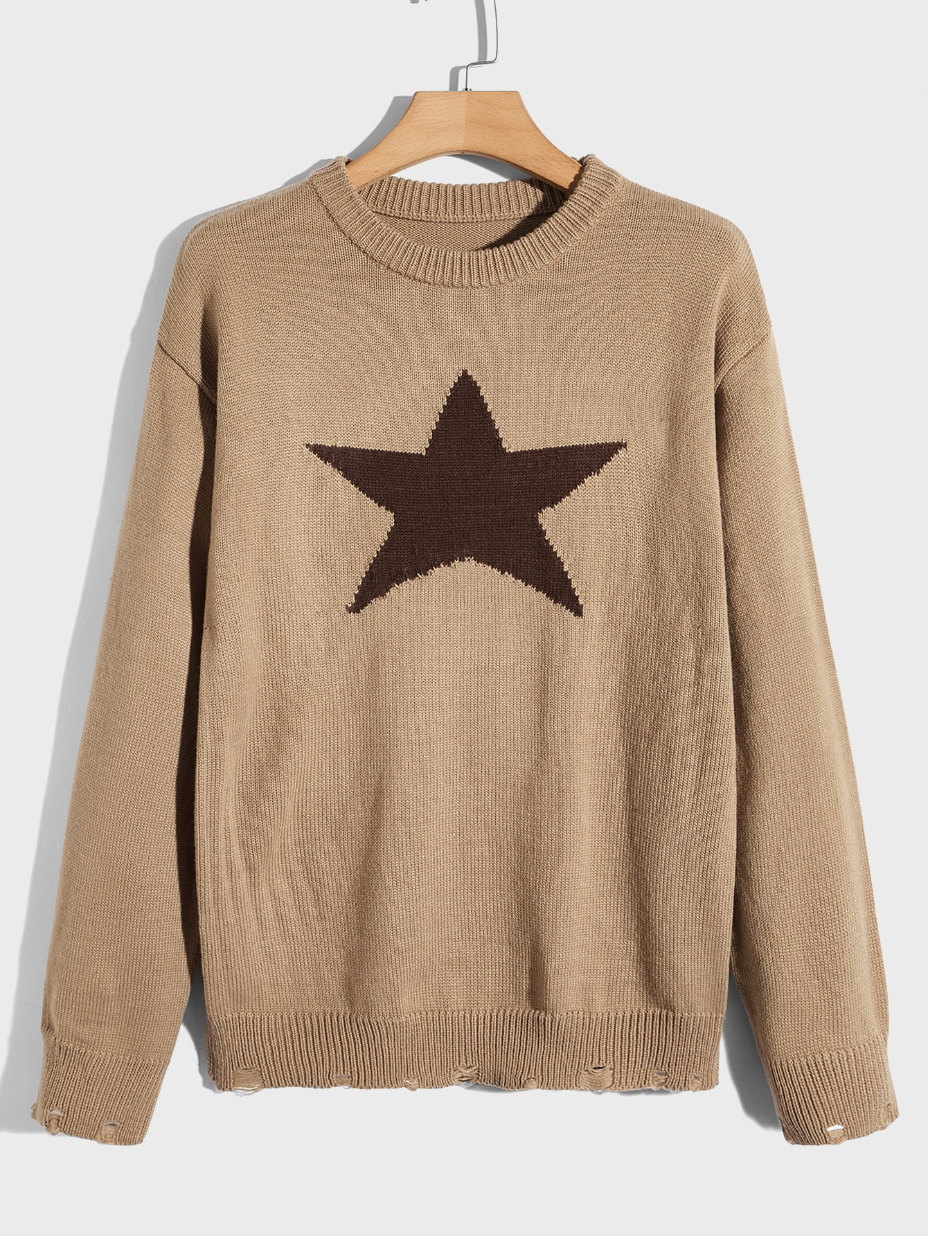 لباس علوي صوف ممزق نمط النجوم للشباب
