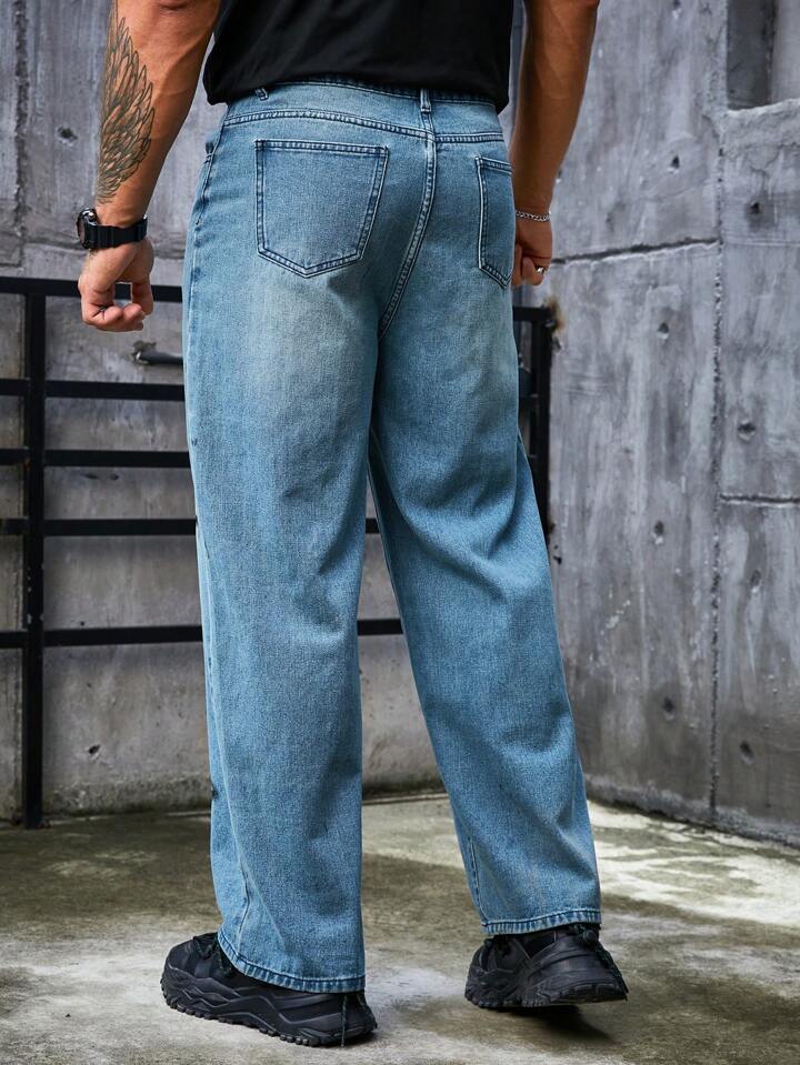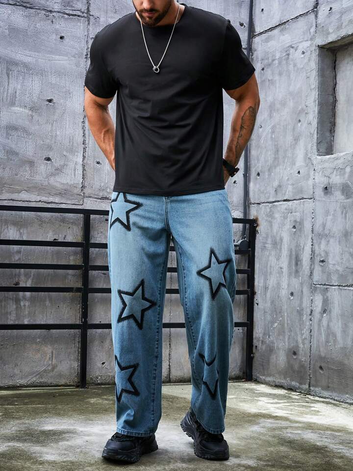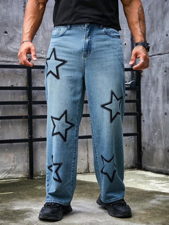 جينز بساق مستقيم بطباعة قمر للرجال