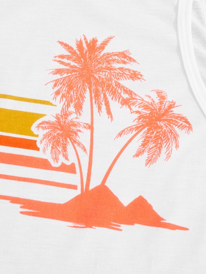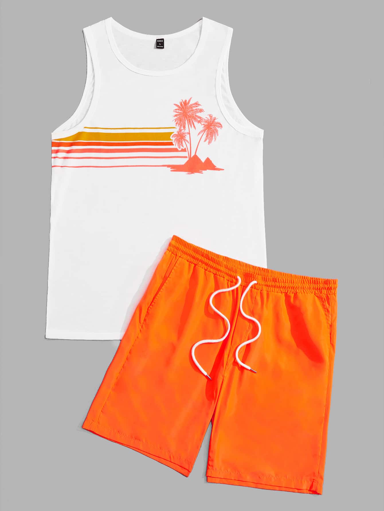 للرجال مخطط مع طباعة شجرة جوز الهند لباس علوي تانك مع رباط خصر بنطلون قصير