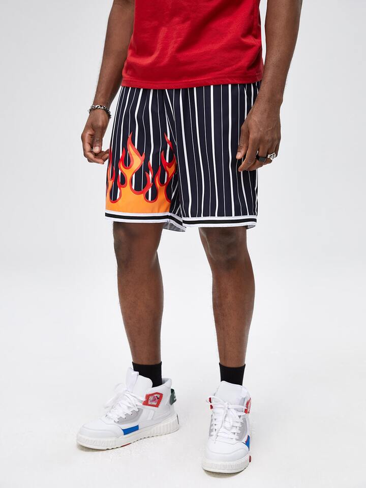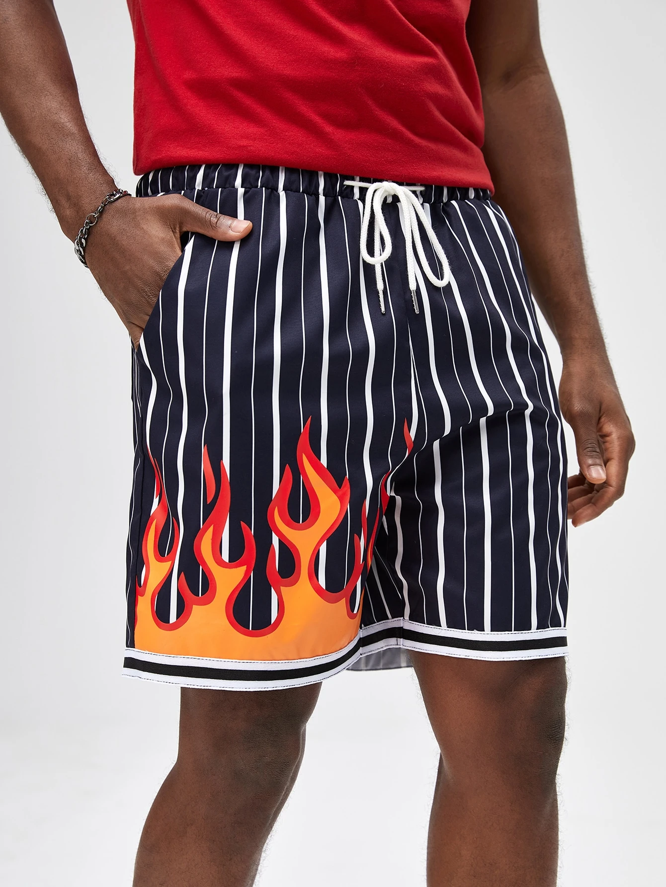 بنطلون قصير مخطط و بطباعة نار رباط خصر للشباب