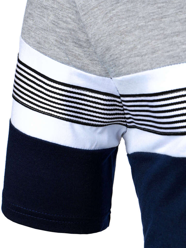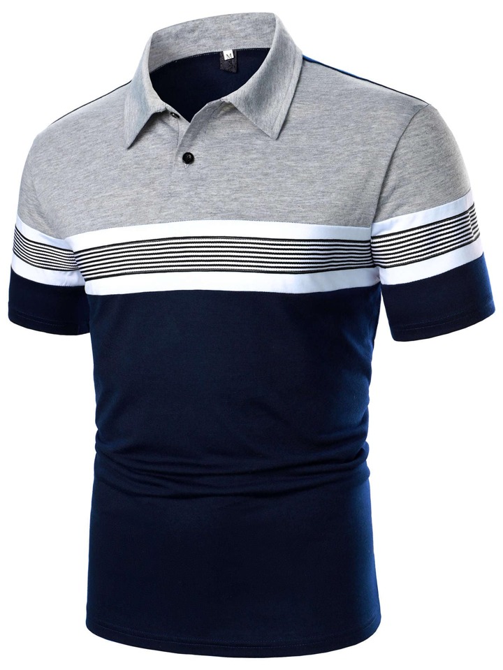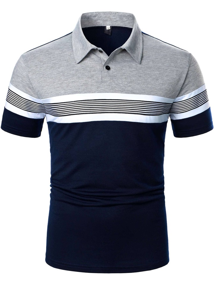 قميص بولو للرجال بأزرار نصفية وخطوط متعددة وكتل لونية مناسب للعمل والأعمال الكاجوال للزوج