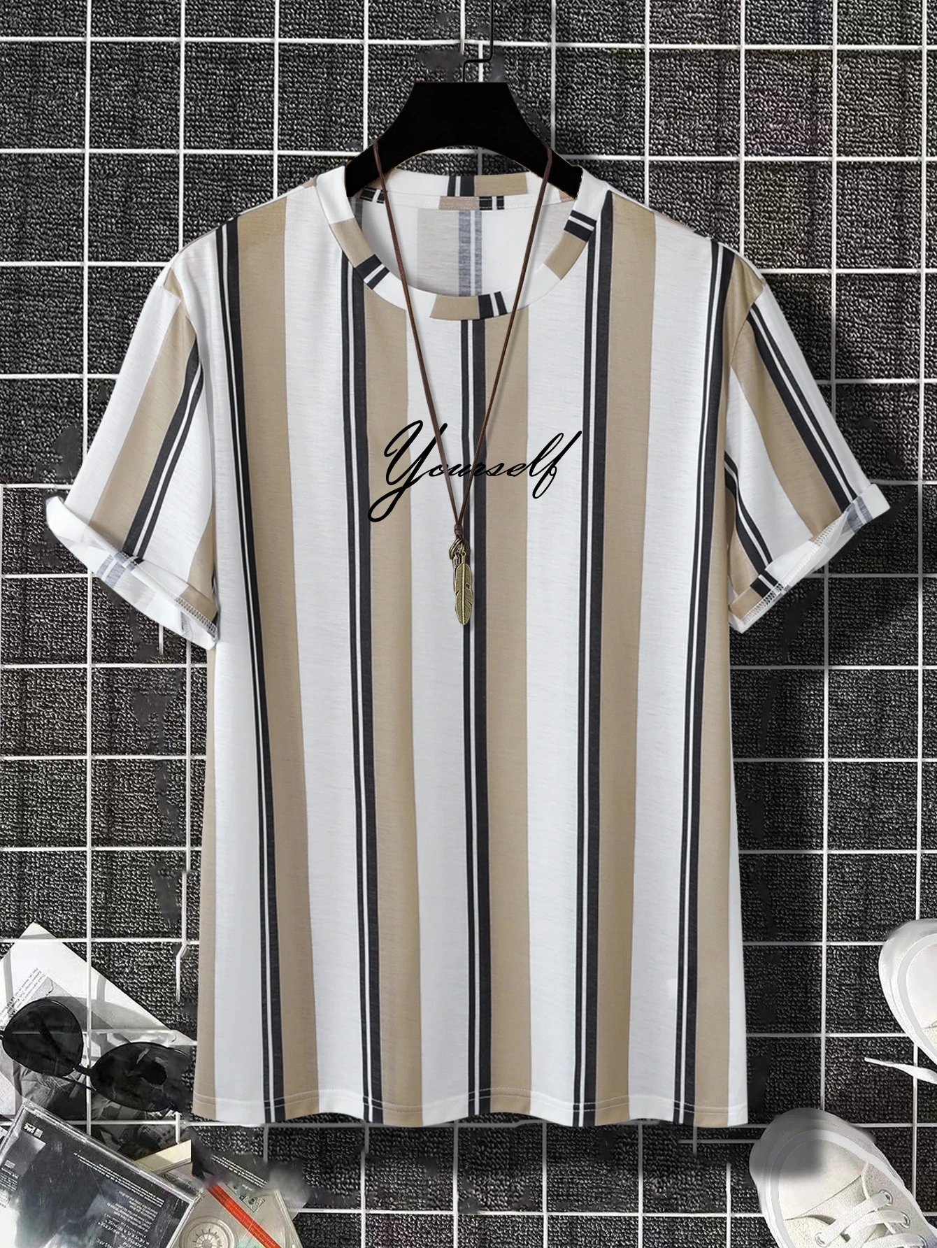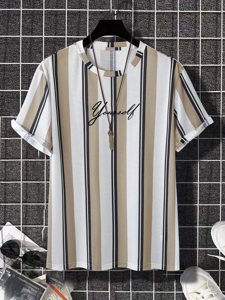 تي شيرت جرافيك مخطط وعبارة للرجال
