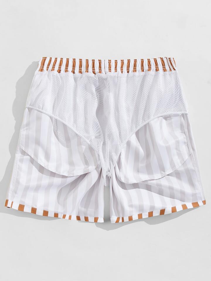 شورتات سباحة بخصر رباط مطبوع بخطوط للرجال، للشاطئ، العطلات