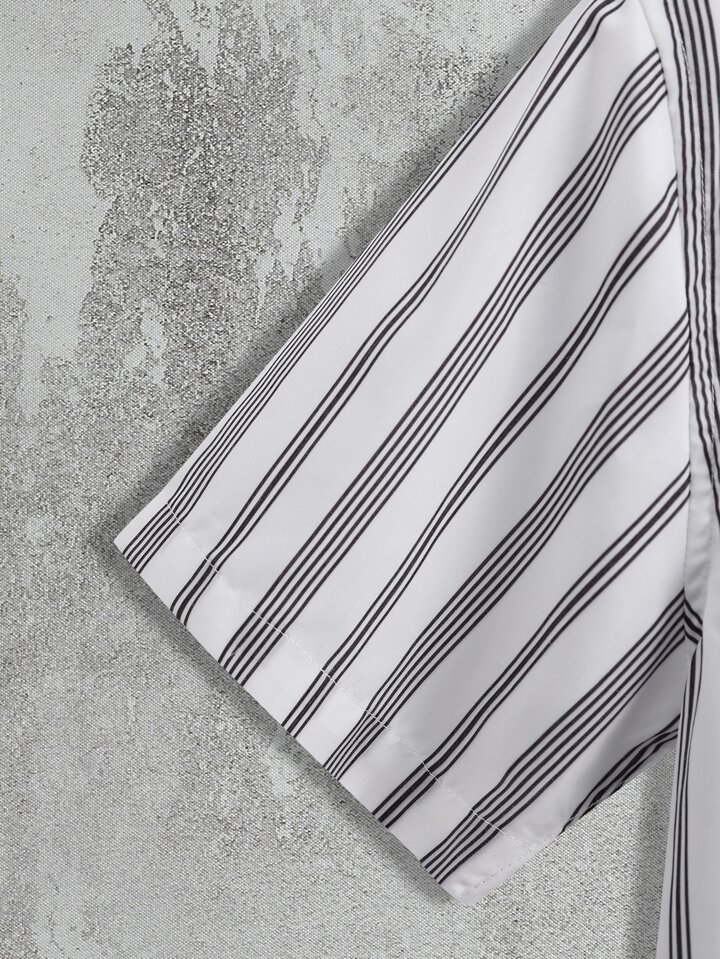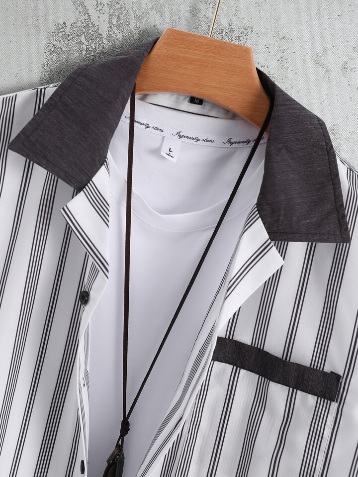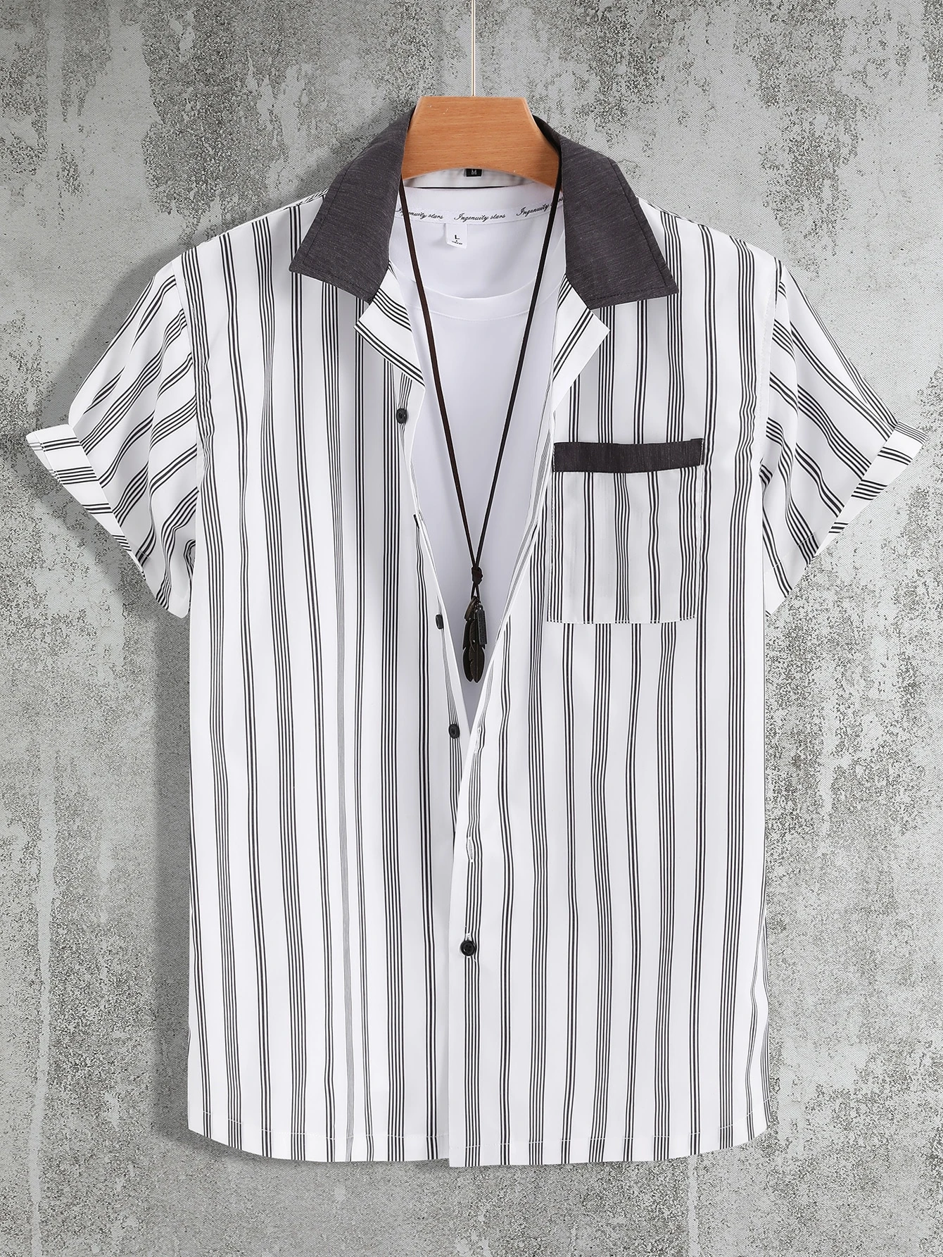 قميص طباعة مخطط جيب مرقع بدون تي شيرت للرجال