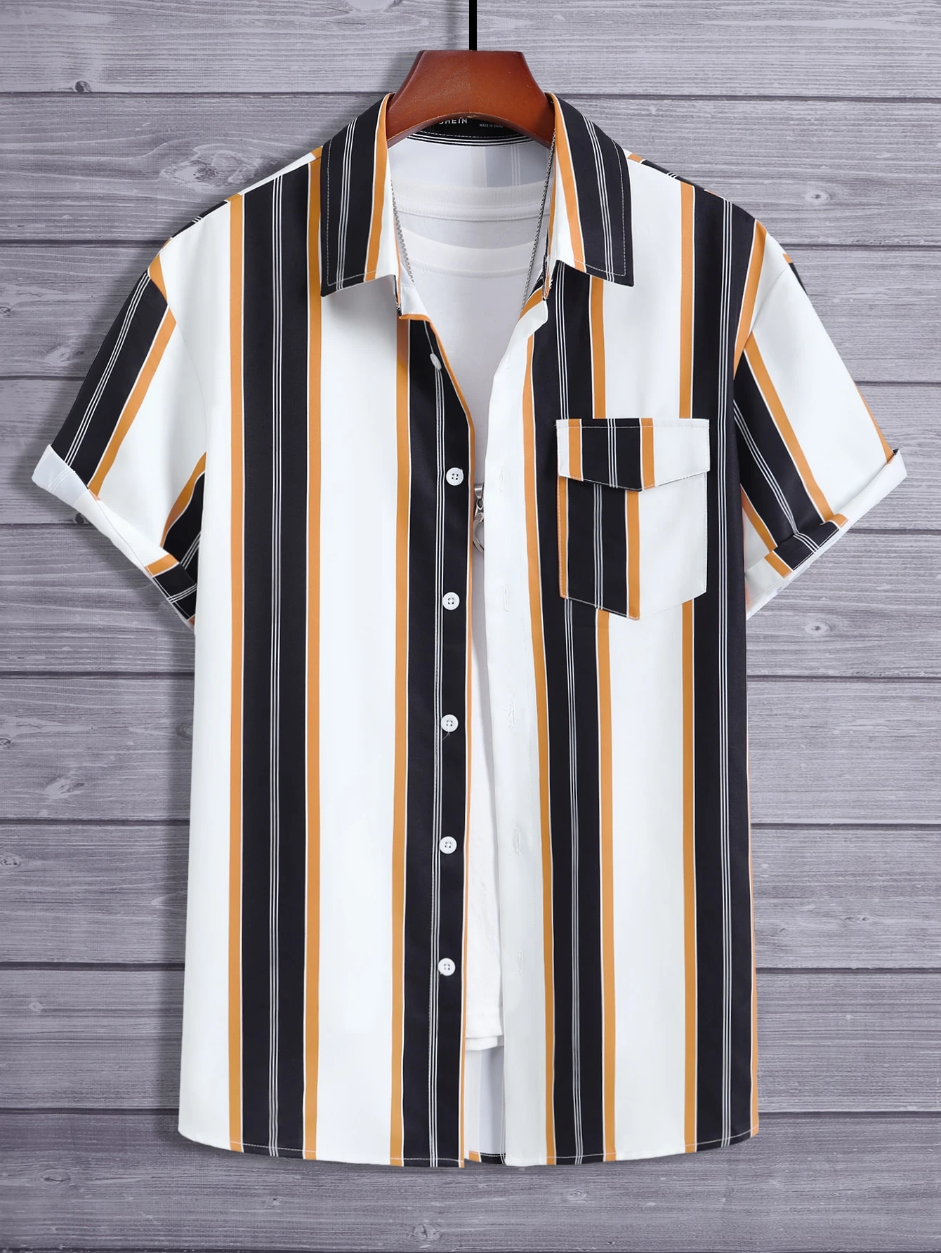 قميص طباعة مخطط بدون تي شيرت للرجال
