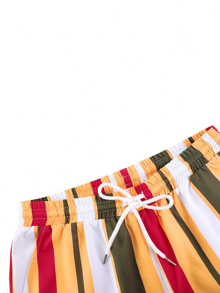 للرجال مخطط قميص و رباط خصر بنطلون قصير بدون تي شيرت