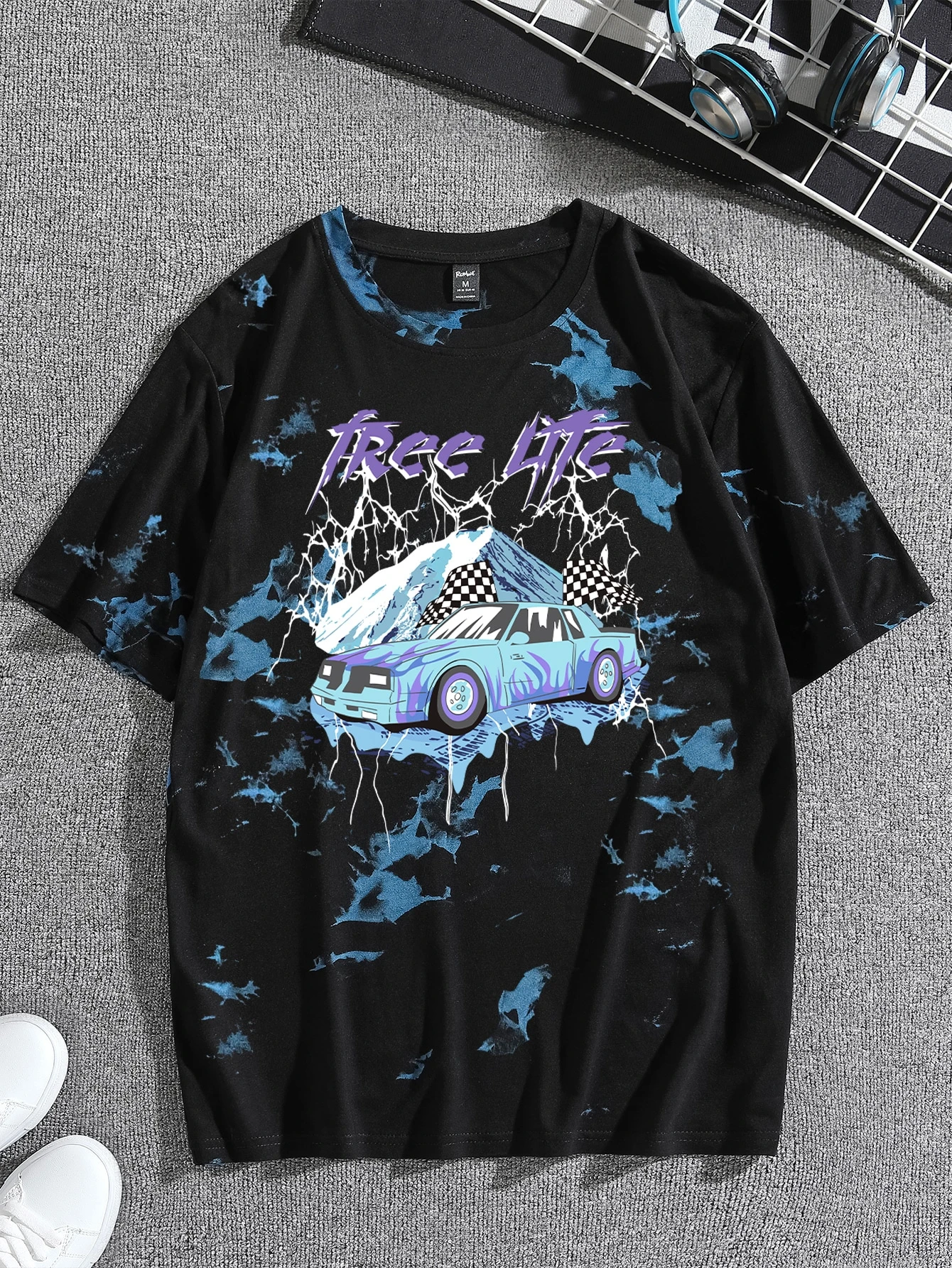 تي شيرت صبغ متعادل طباعة سيارة للشباب