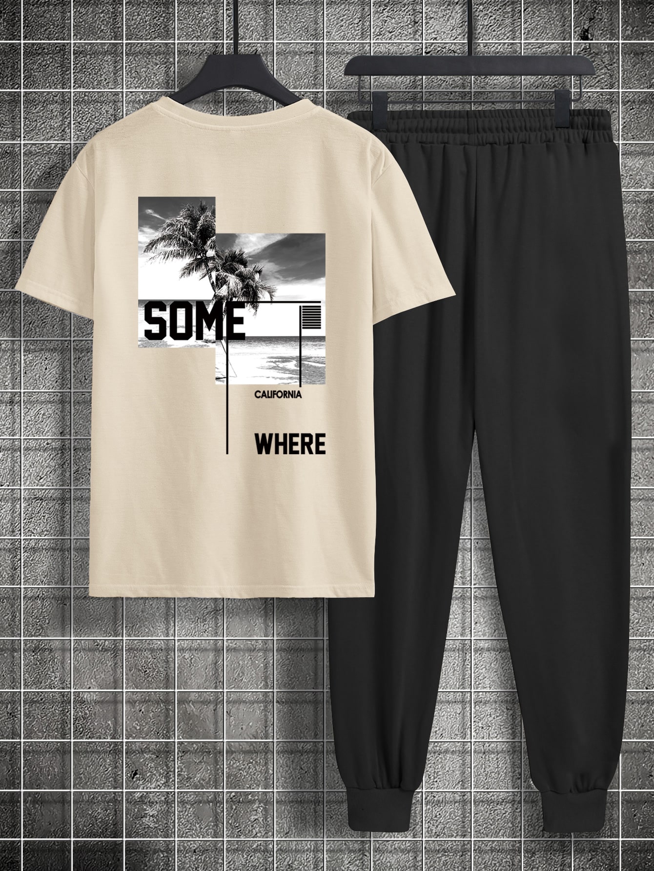 للشباب شجرة بطباعة أحرف تي شيرت مع رباط بناطيل رياضي