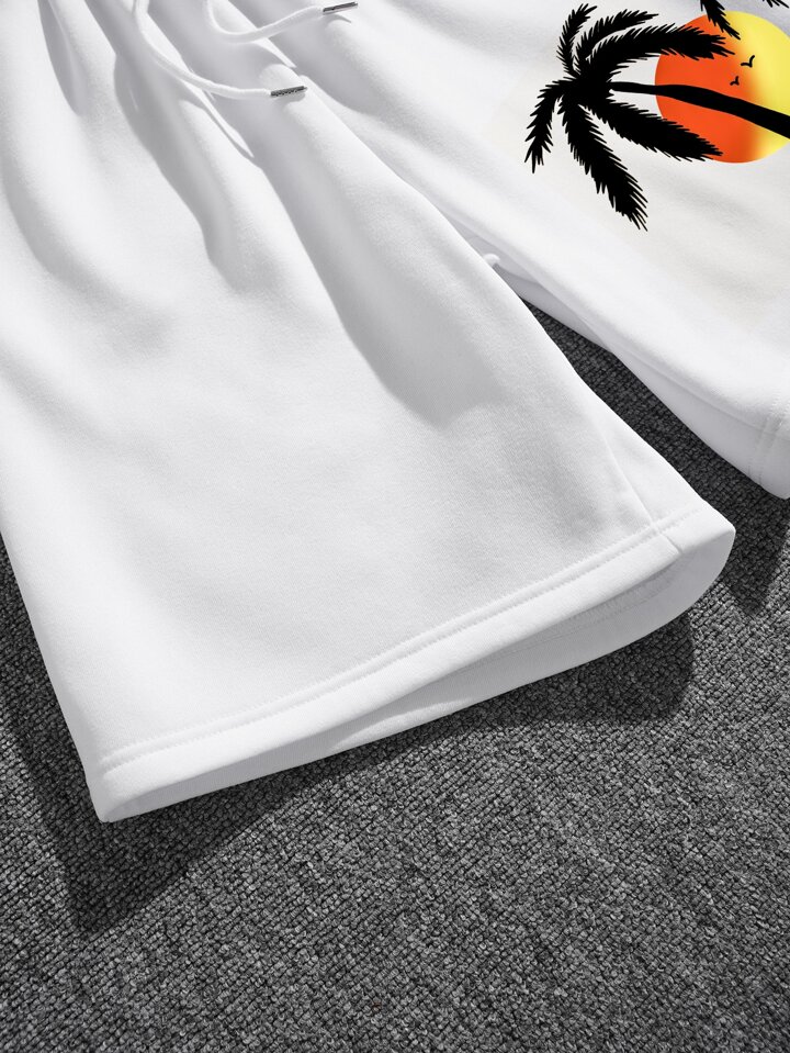 بنطلون قصير بطباعة استوائية رباط خصر للرجال