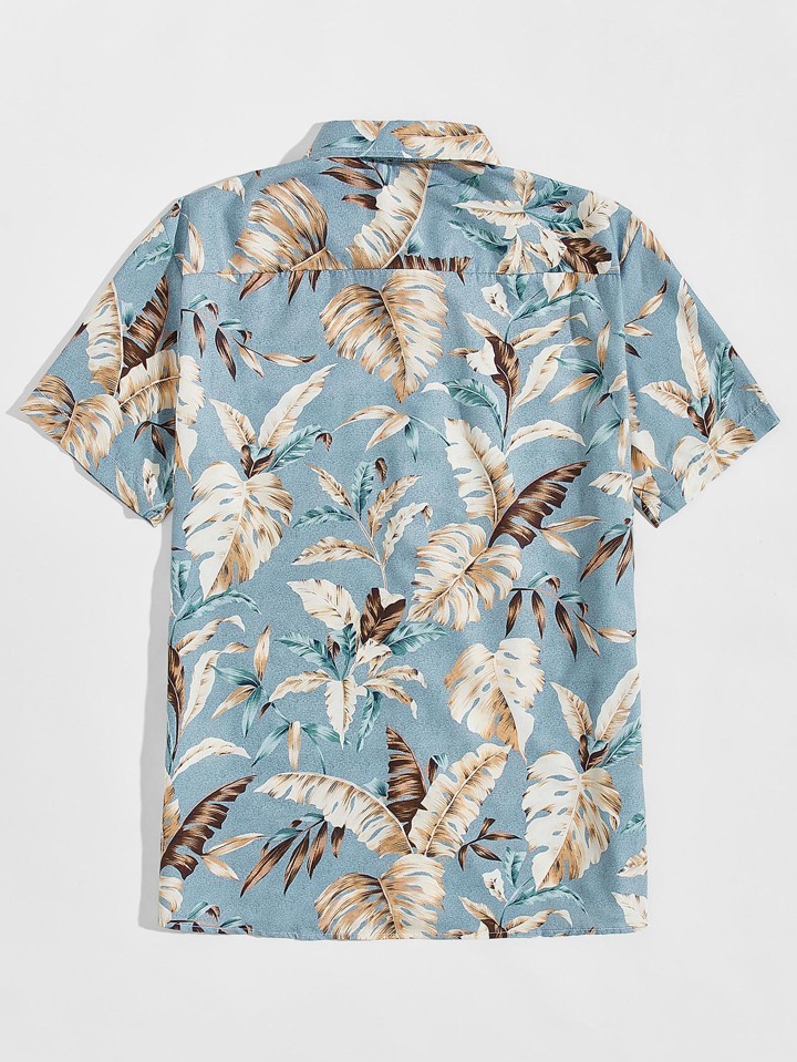 قميص هوائي بطبعة استوائية للرجال، ويتألف من كتف قصير مع زر لأعلى، منقوش بالألوان الجرافيكية للكتل، هدية صديق في الشاطئ