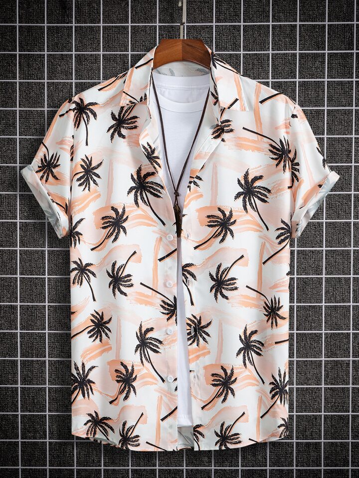 قميص بطباعة استوائية بدون تي شيرت للرجال
