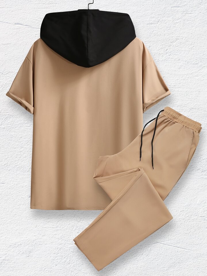 قميص لونين رباط قبعة مع بنطلون بدون تي شيرت للرجال
