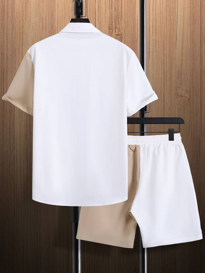للرجال لونين قميص و رباط خصر بنطلون قصير بدون تي شيرت