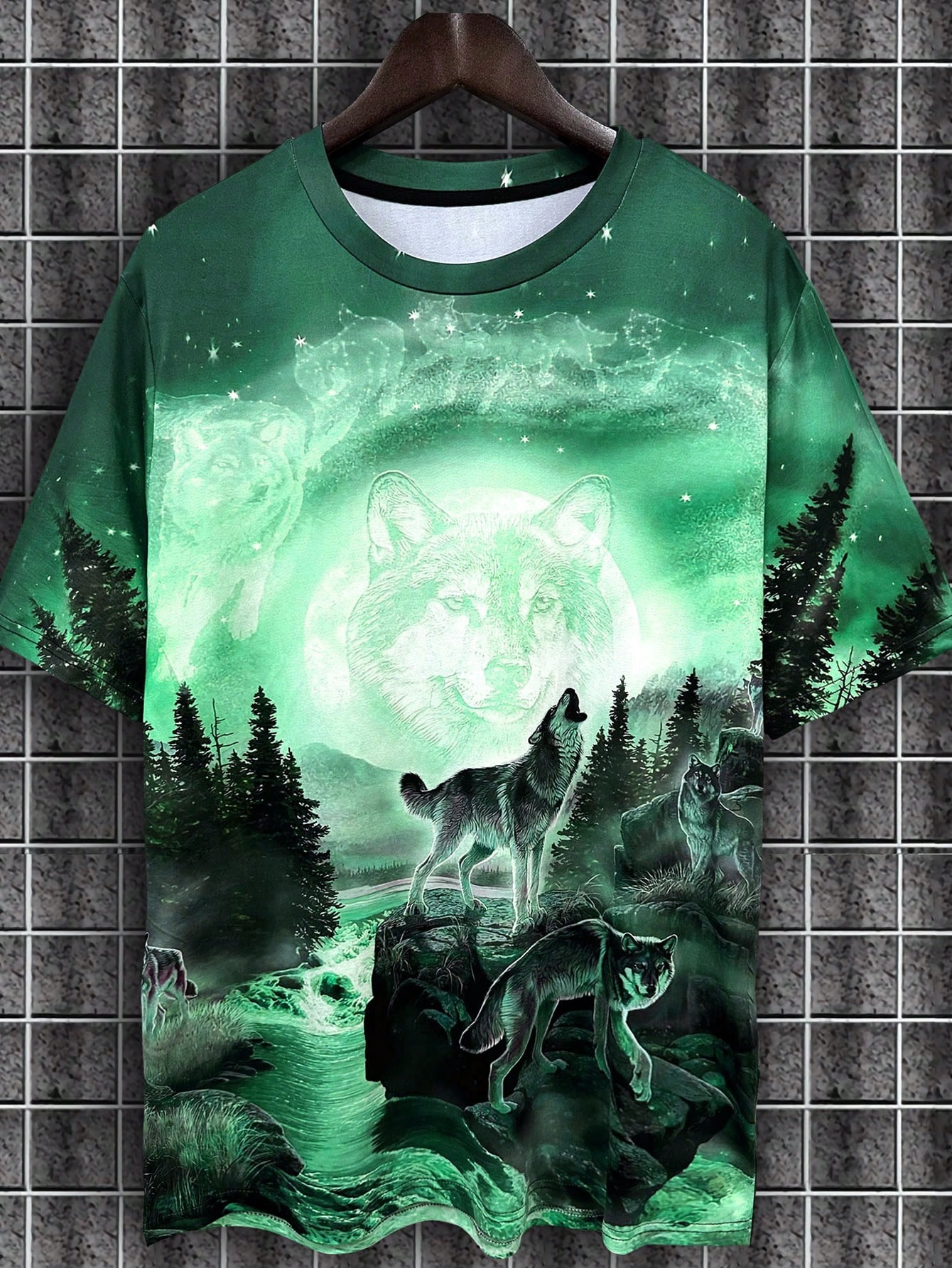تي شيرت ذئب & بطباعة شجرة للرجال