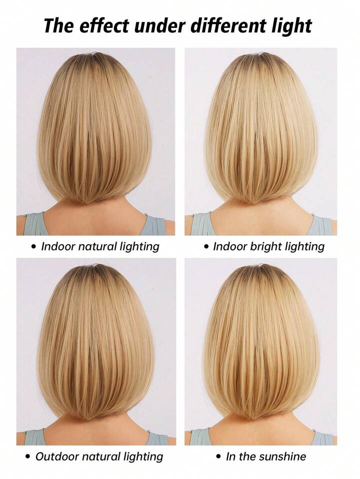 Haircube 14 بوصة شعر شقراء قصير مستقيم مع اطراف جانبية مع شعر الجذر الداكن مجعد باروكات اصطناعية مقاومة للحرارة للاستخدام اليومي والحفلات باروكة