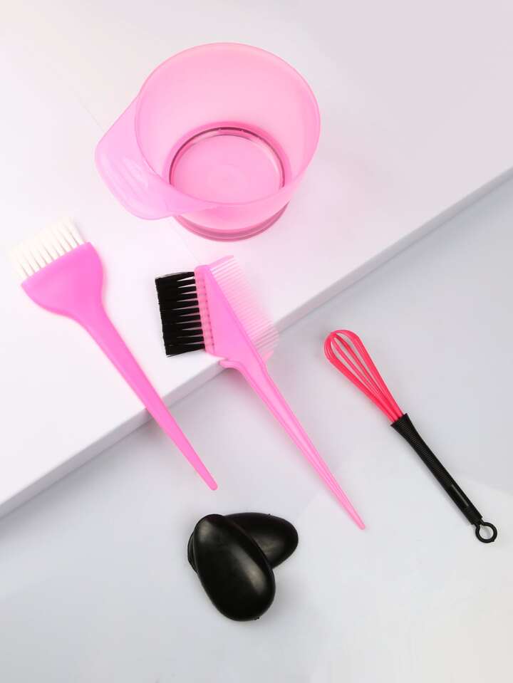 مجموعة أدوات صبغ الشعر ، 6 قطع ، وعاء خبز الشعر الوردي ، غطاء للأذنين ، فرشاة مشط وصبغ ، وصالون لتصفيف الشعر
