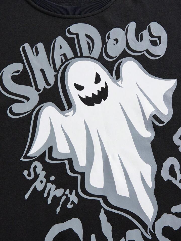 بلوفر أزرق فاتح مطبوع عليه أشباح هالوين مقنع